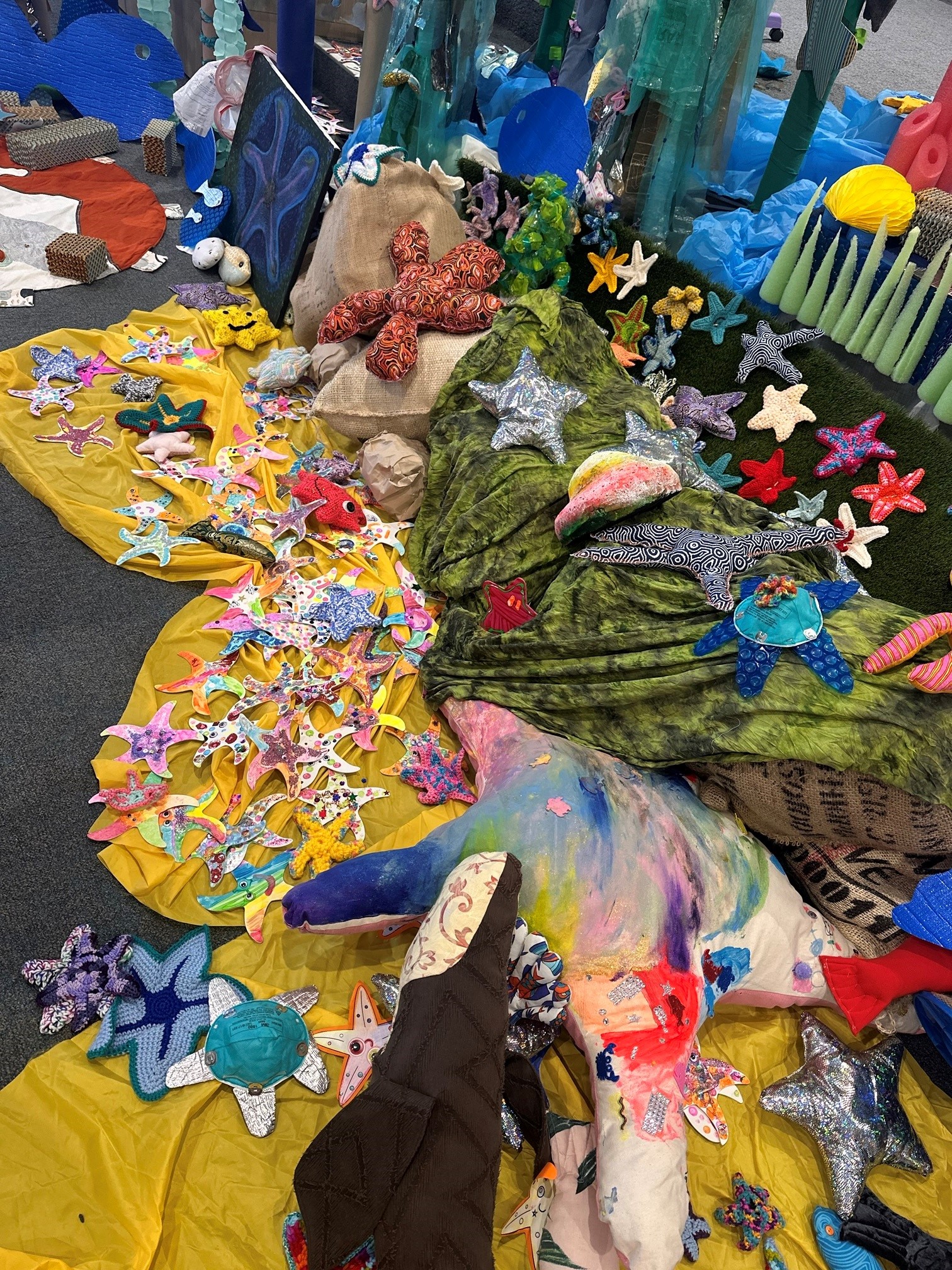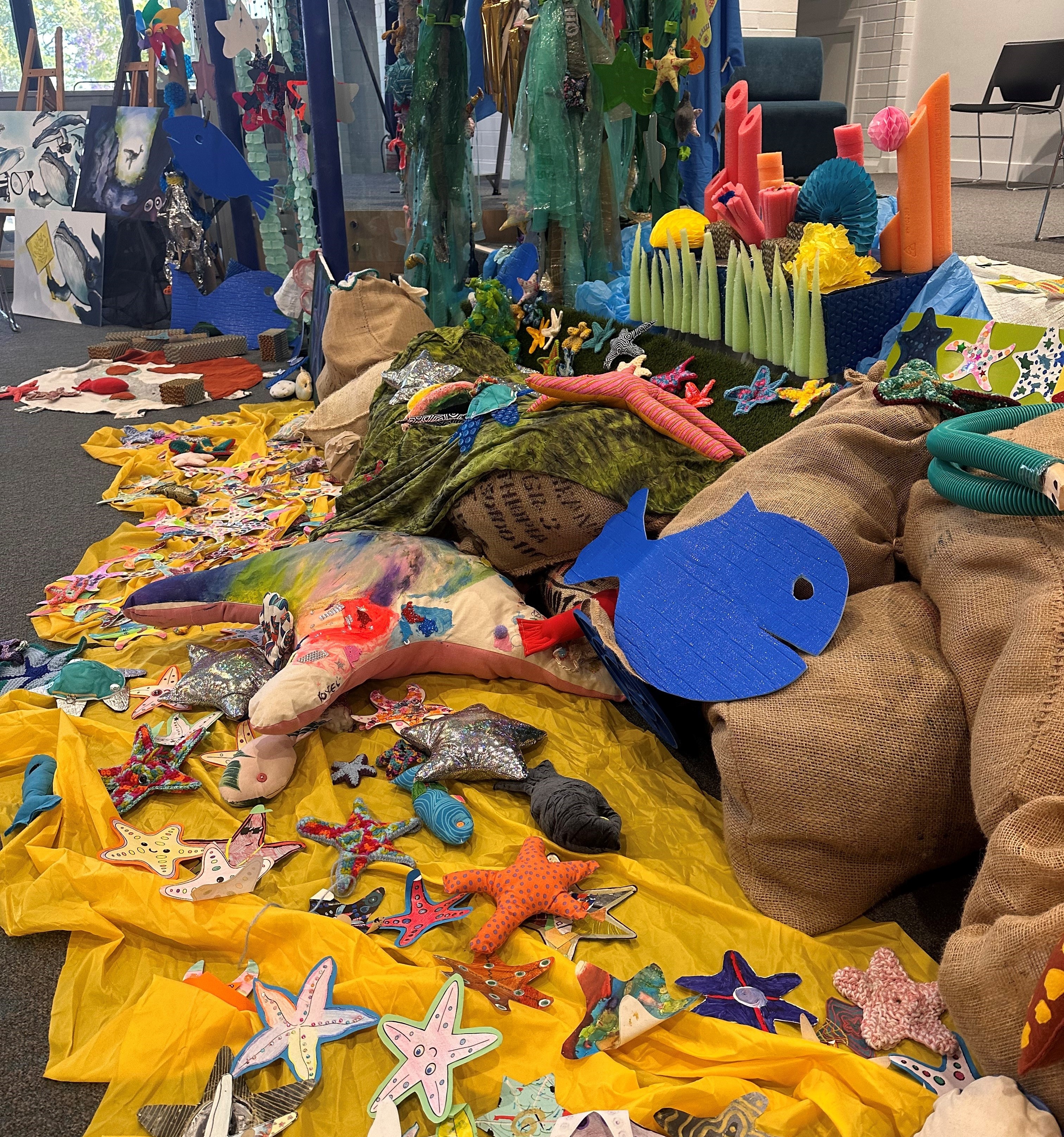 Earlier in the year the lower school art students contributed to the spectacular oceanic installation for the official launch of “Wonky’s Yarn” by making a variety of colourful starfish from paper and found objects.