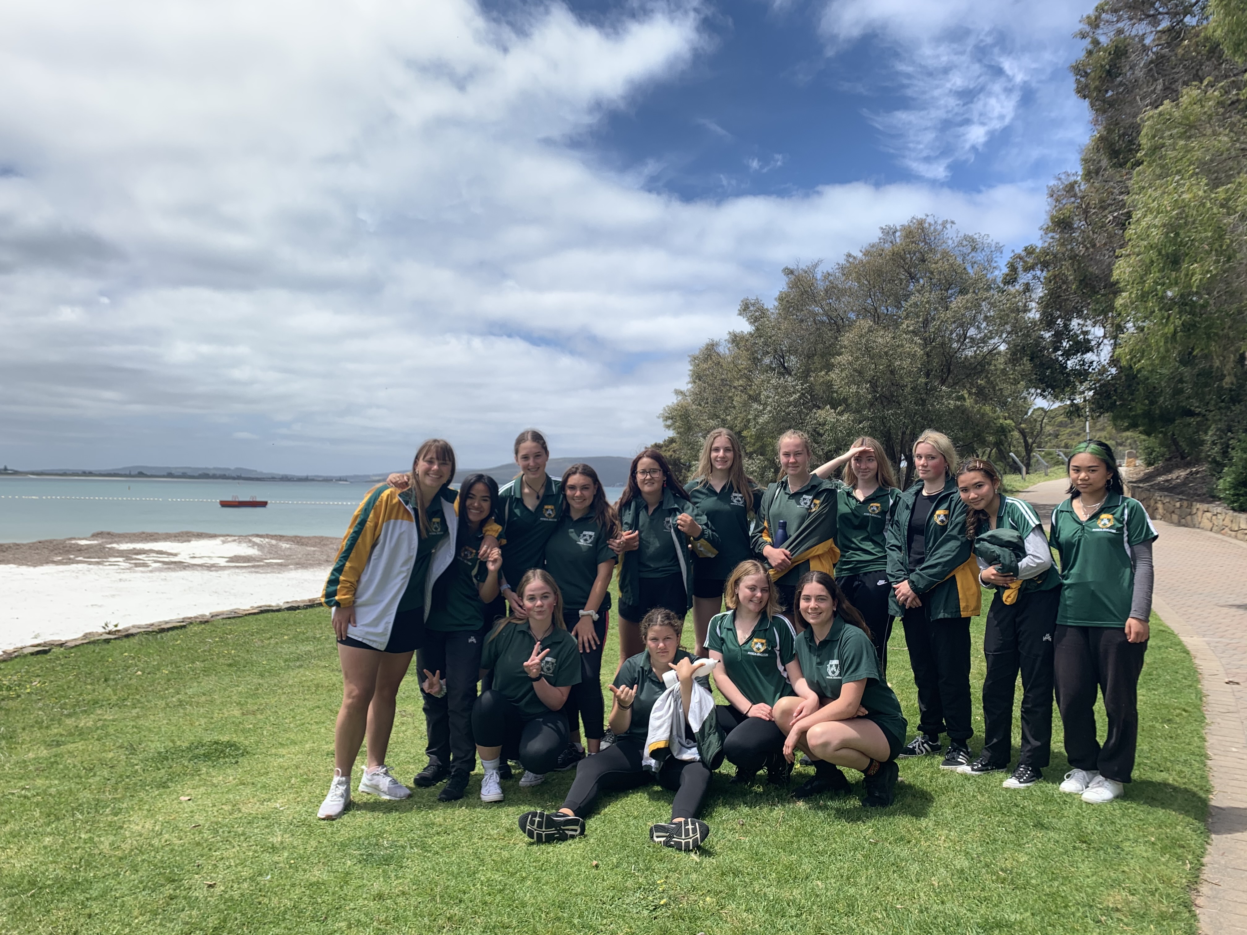 Year 10 girls having a well deserved rest after completing a rigorous beach boot camp.Well done. Ms McKeague