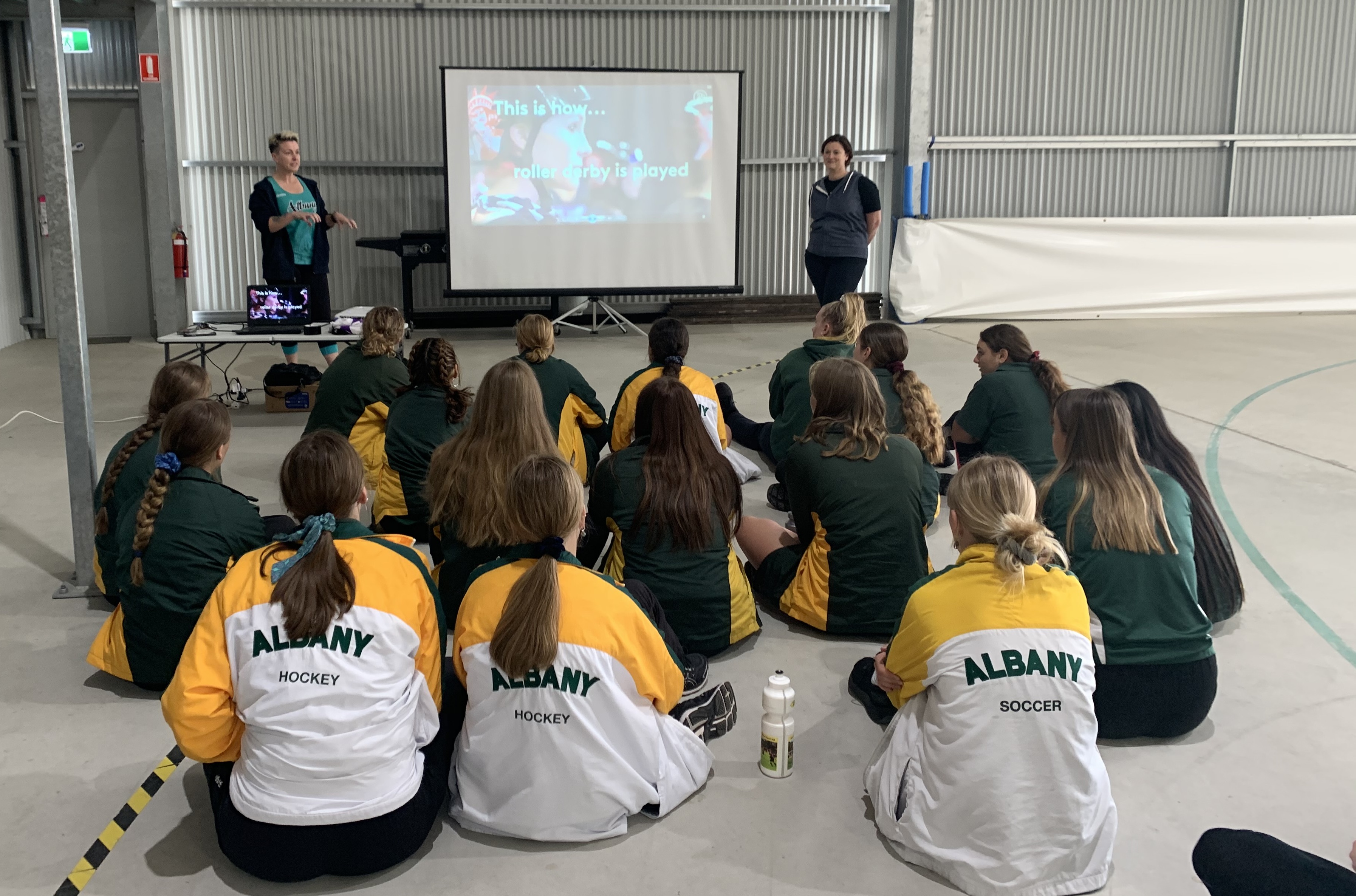 The Year 10 girls participated in some activities at the Albany Roller Derby this week. It involved learning about the rules and the history of the sport before giving it Shoe Derby a go!