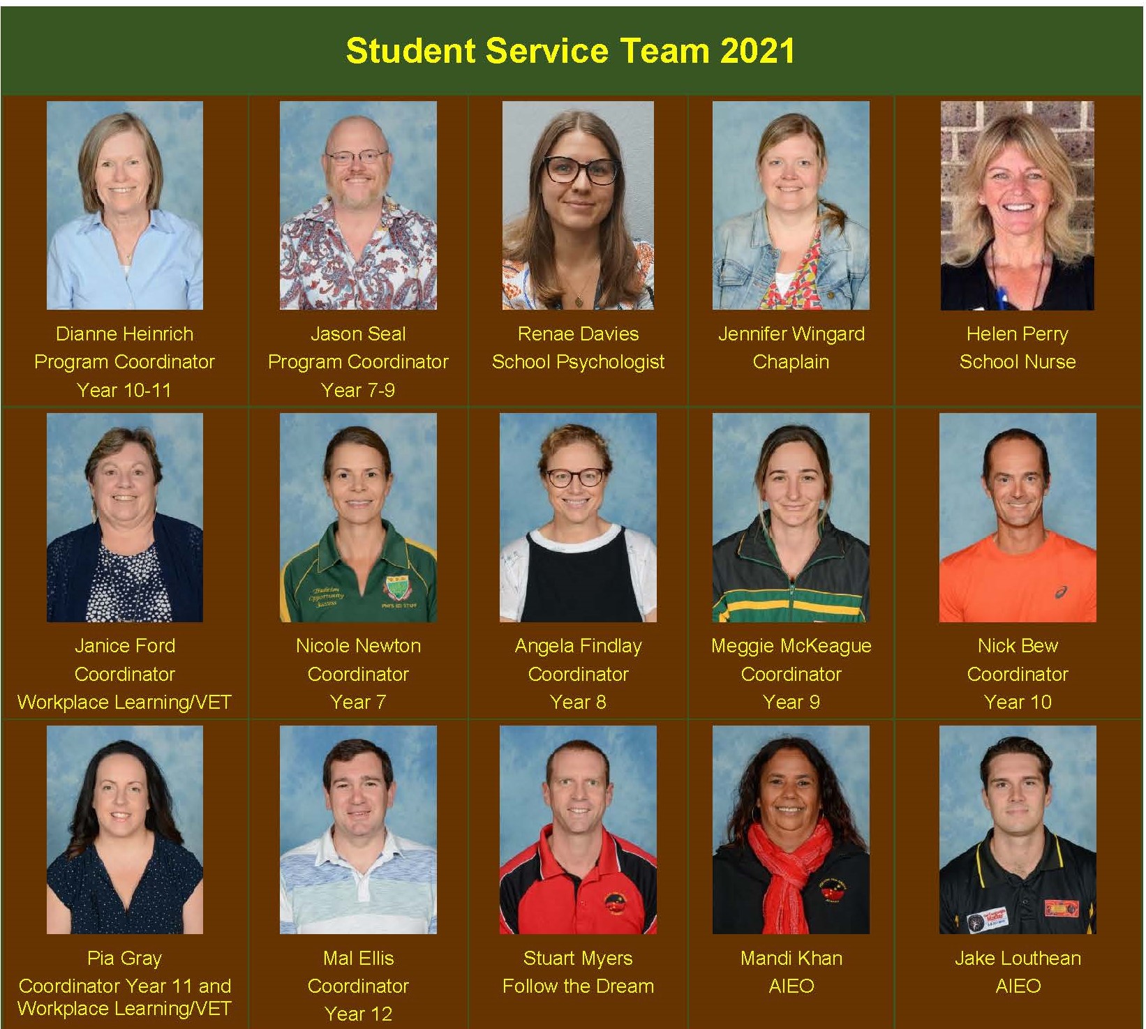 The team in Student Services are here to support the student in all aspects of their schooling. The 2020 Student Services team: